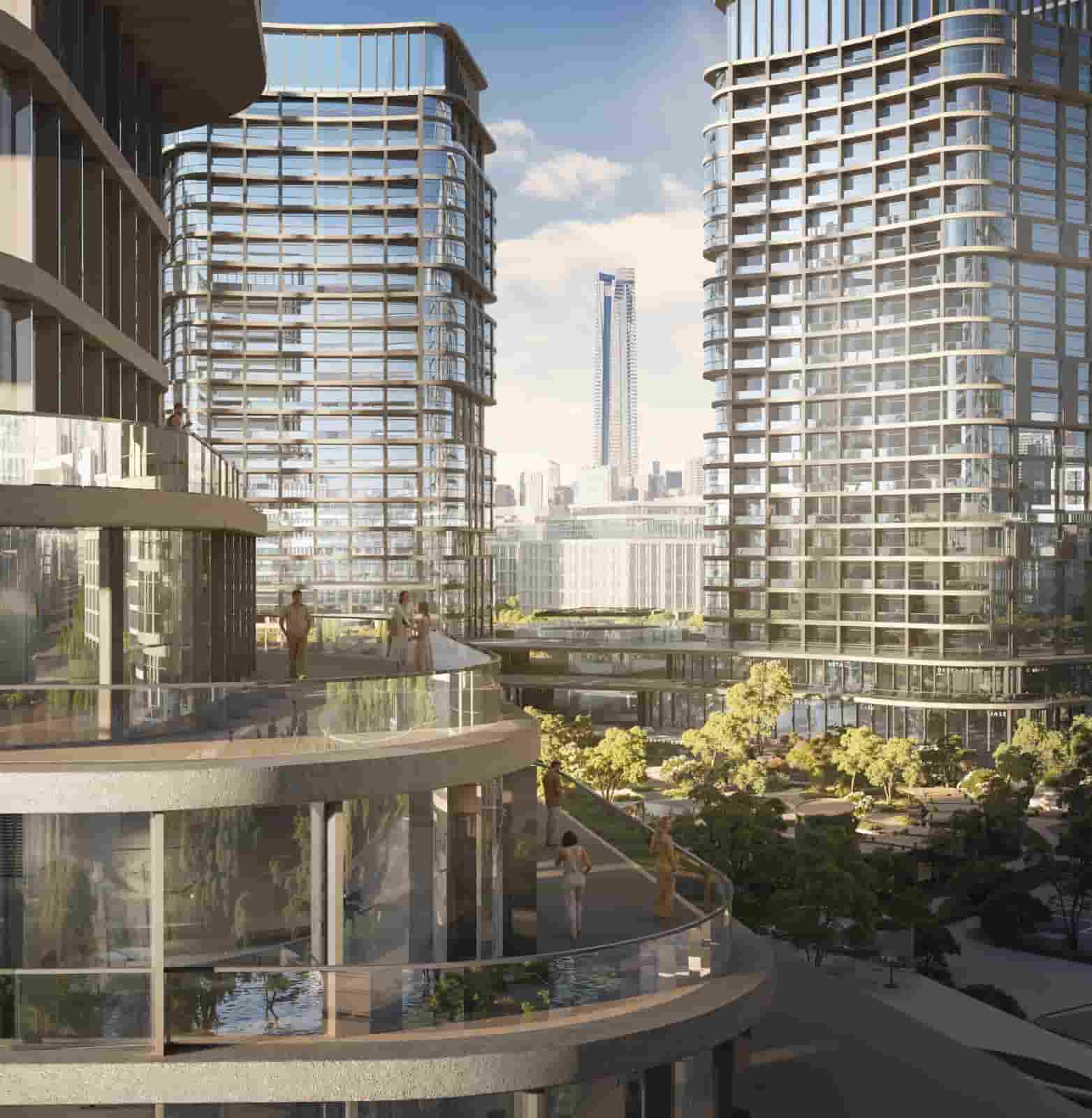 Across an area exceeding 26 acres in the heart of the Financial District, the seven towers are arranged in an architectural design inspired by the concept of a “Constellation,” where the buildings harmonize to form a continuous masterpiece of light and life.