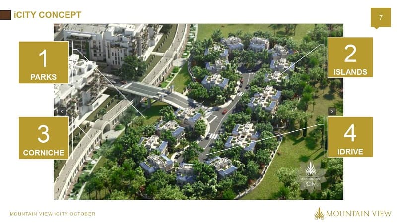 Mountain View iCity October Compound spans a vast area of approximately 500 acres, which has been developed according to a modern master-planning vision based on the innovative iCity concept. This concept aims to create a fully integrated residential community that offers the highest levels of privacy, smooth mobility, and an enhanced quality of life.