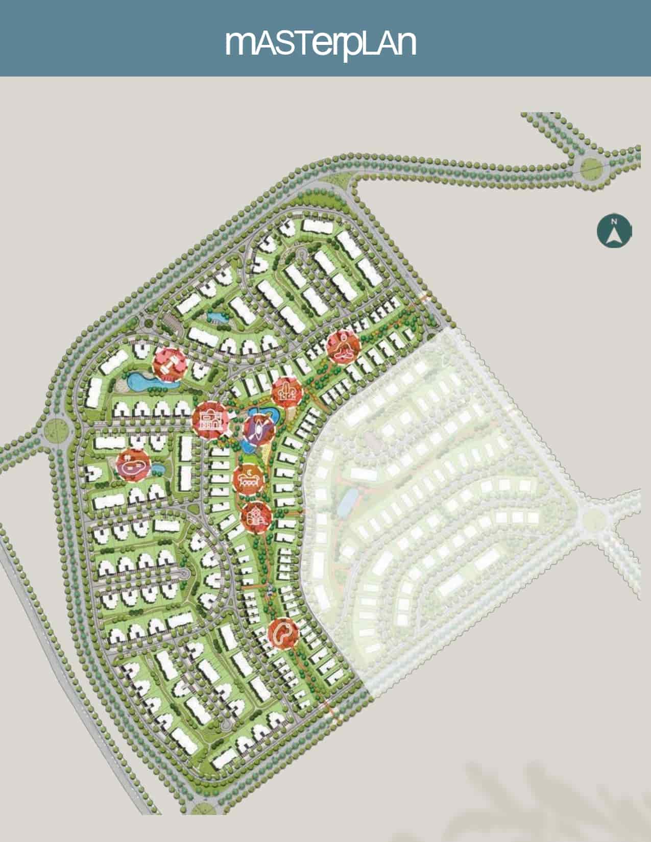 - مراكز اجتماعية (Community Centers) في كل مرحلة من مراحل المشروع لتعزيز التواصل بين السكان.