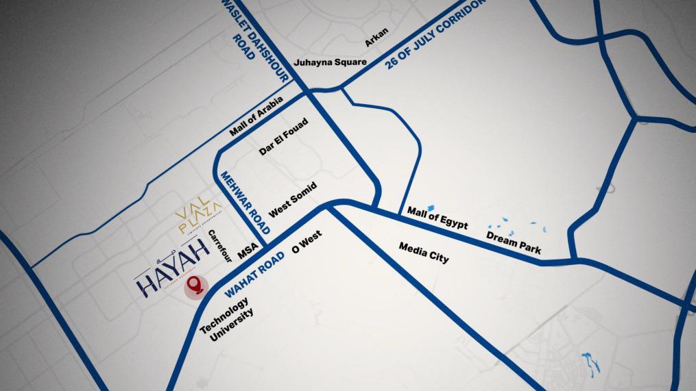 يتمتع كمبوند حياة ريزيدنس 6 اكتوبر Hayah Residence October بموقع استراتيجي مميز في واحدة من أهم المناطق الحيوية بمدينة السادس من أكتوبر، حيث اختارت شركة جواد للتطوير العقاري موقع المشروع بعناية ليكون على طريق الواحات مباشرة، وهو ما يمنح السكان سهولة كبيرة في الوصول إلى مختلف المناطق الحيوية داخل أكتوبر وخارجها. ويُعد هذا الموقع من أكثر المواقع طلبًا للسكن والاستثمار، نظرًا لقربه من الطرق الرئيسية والمراكز الخدمية والترفيهية التي توفر أسلوب حياة مريح ومتكامل للسكان، بالإضافة إلى ارتفاع القيمة الاستثمارية للمشروع بفضل موقعه المميز.