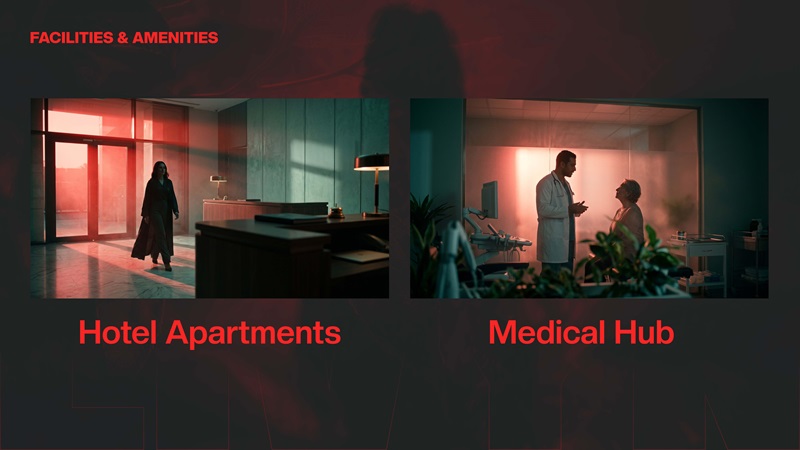 - مركز طبي متكامل (Medical Hub): رعاية صحية على مدار الساعة لجميع سكان الكمبوند.