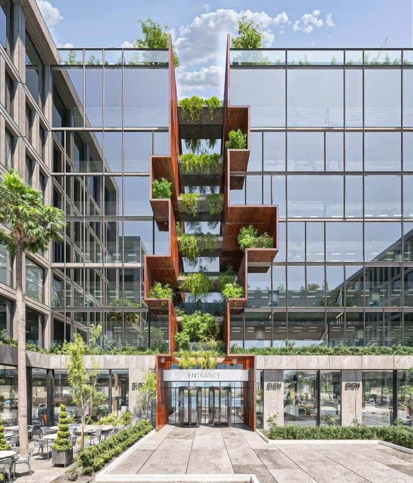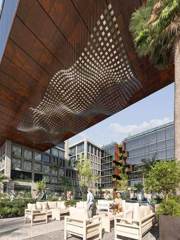 - كما تم تخصيص 60% من إجمالي المساحة للمساحات الخضراء واللاند سكيب، مما يمنح المول إطلالة مريحة للعين وبيئة عمل راقية.